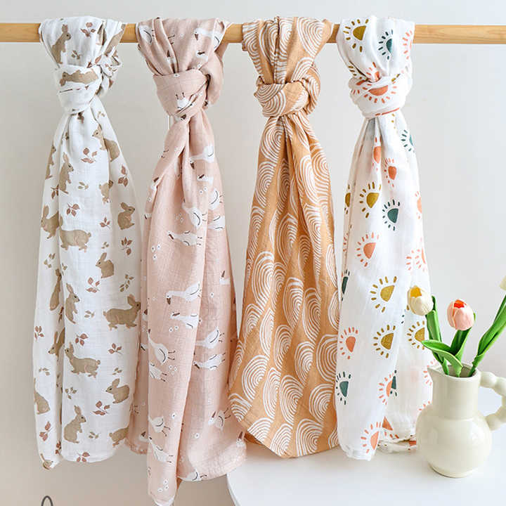 Couverture d'emmaillotage personnalisée pour nouveau-né, motif lapin, 70% bambou 30% coton, en mousseline, pour bébé musulman
