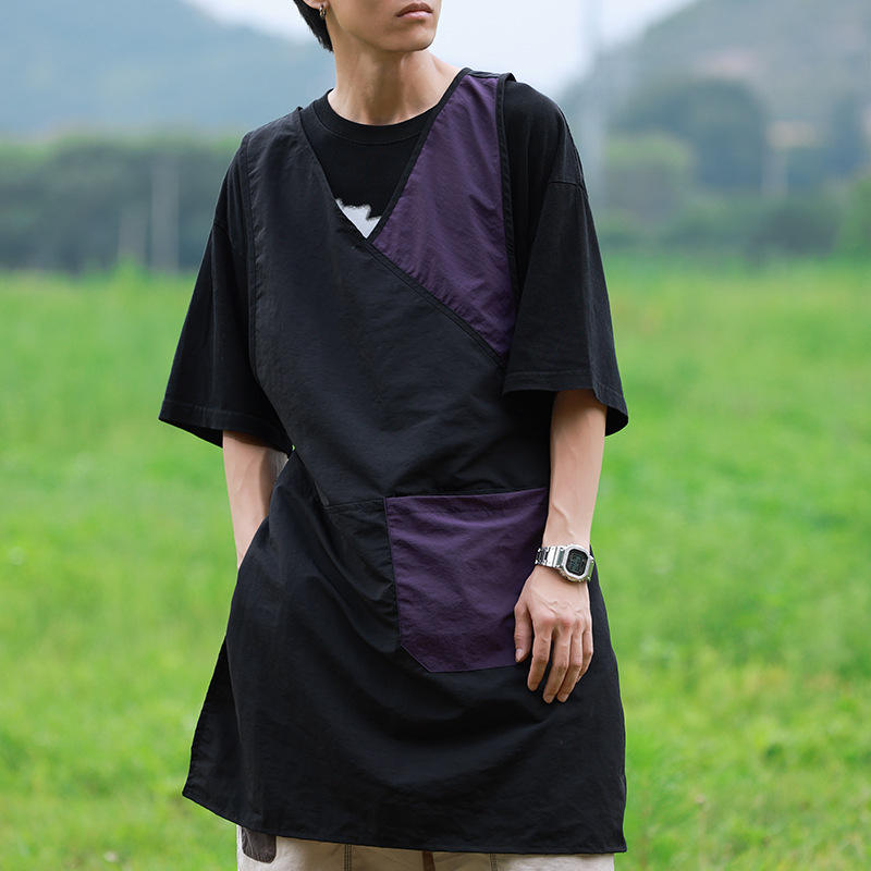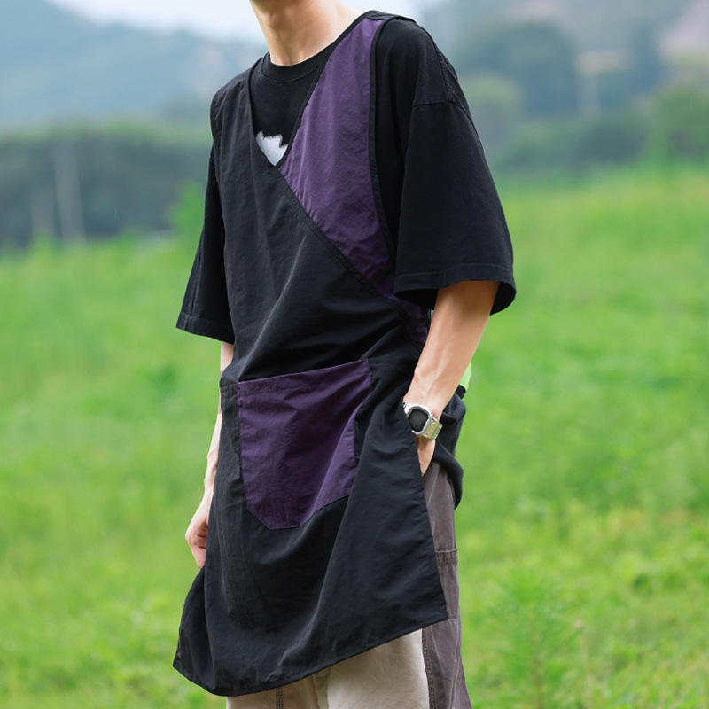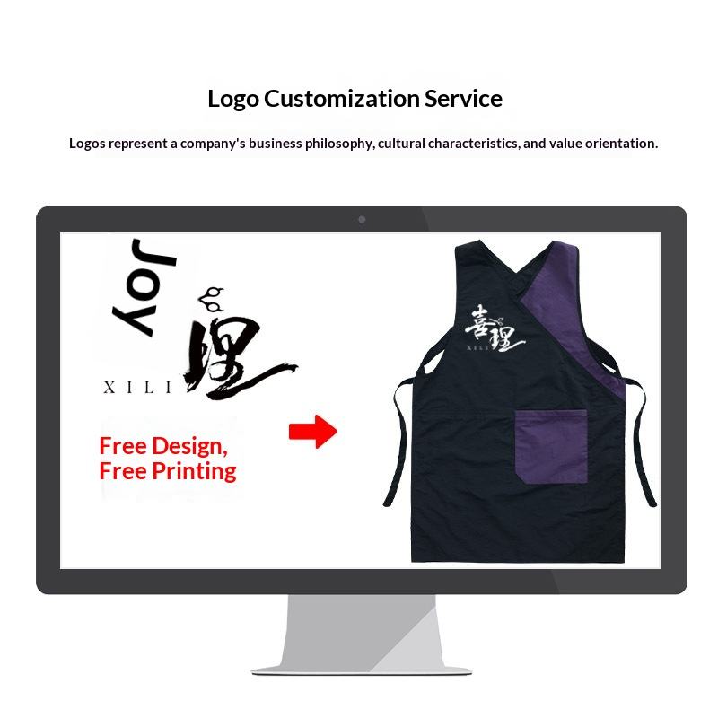 Tablier sans manches avec logo imprimé, design color block, poche avant pour salon de coiffure, salon de thé, usage domestique - Taille adulte