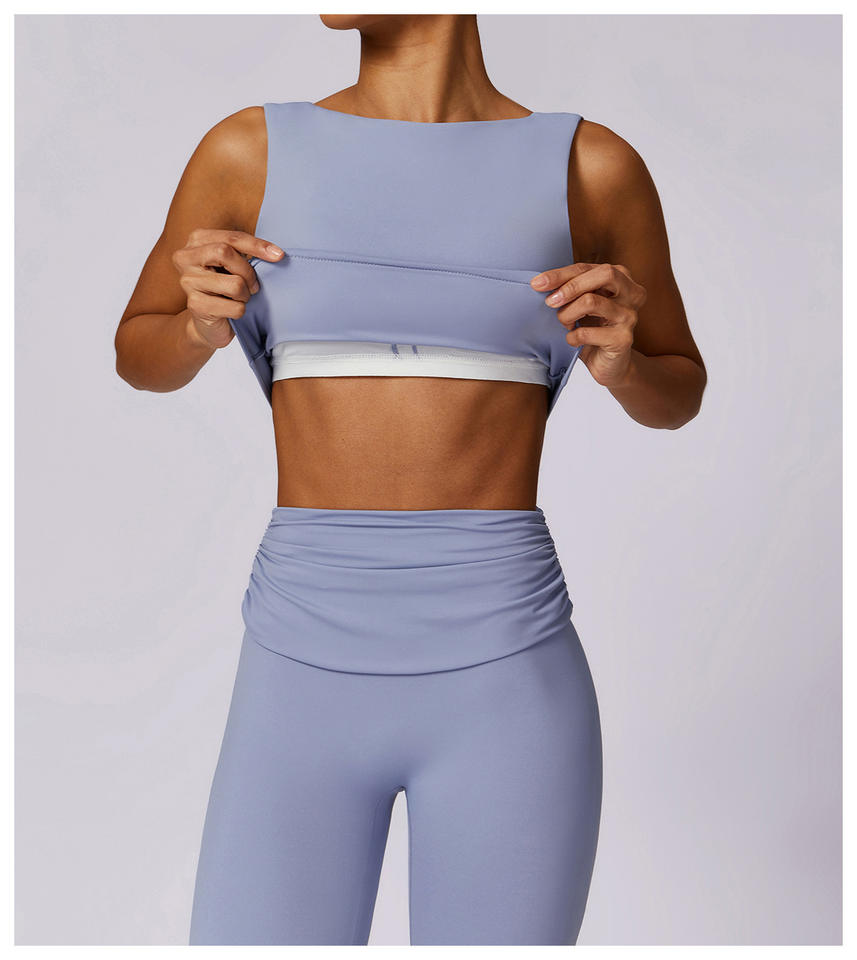 Women's Sleeveless Sports Training Sports Set High for Impact Backless High Waist Yoga Bra Pants Folding Flare Design Breathable