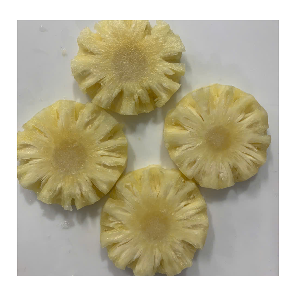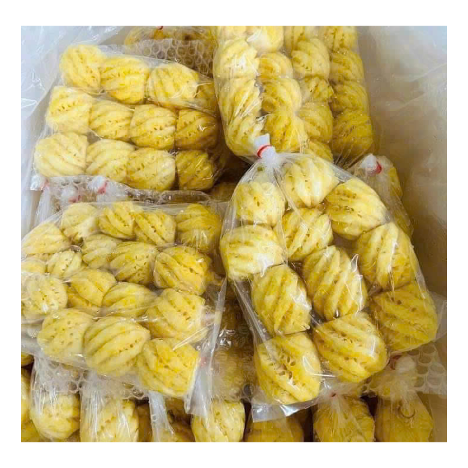 Tranches d'ananas en morceaux congelées, tranches d'ananas traitées IQF/entières/morceaux/petits bouts/cubes d'ananas congelés d'origine du Vietnam
