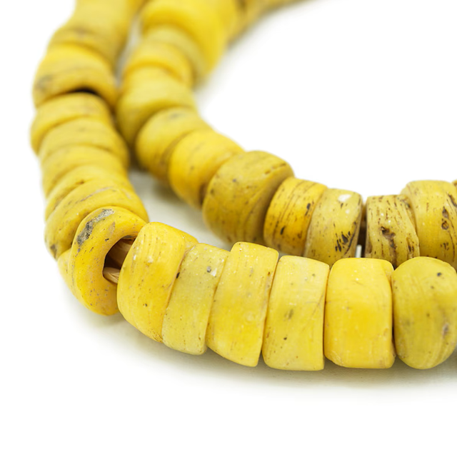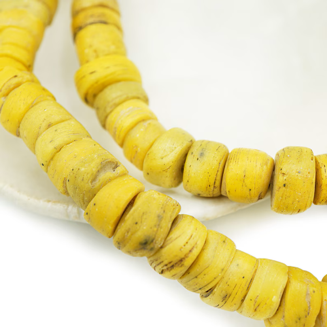 Sliced Yellow Antique African Beads Ancient Old African Tribal Rustic Trade Glass Beads for Earrings Jewelry Making