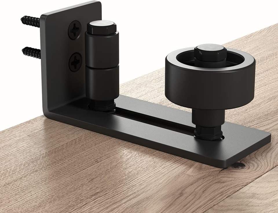 Guide de sol pour porte de grange coulissante avec rouleau inférieur réglable et design encastré, guide de sol plat pour porte de grange avec rouleau de maintien