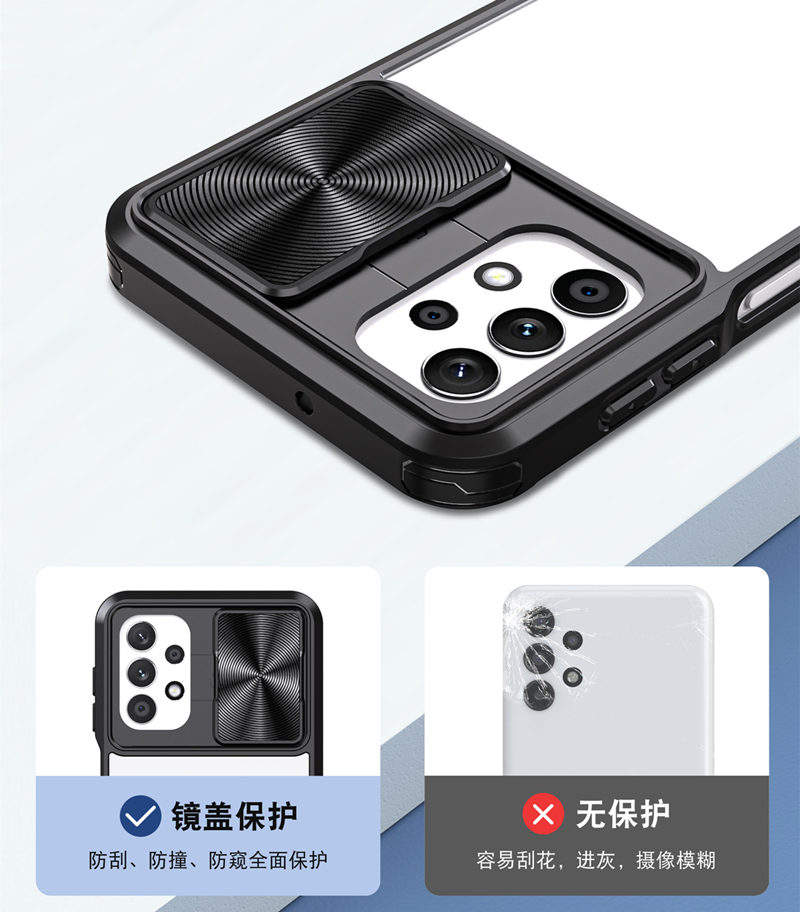Coque transparente pour téléphone portable avec fenêtre coulissante pour Samsung Galaxy A13 A23 A33 4G Protecteur d'écran