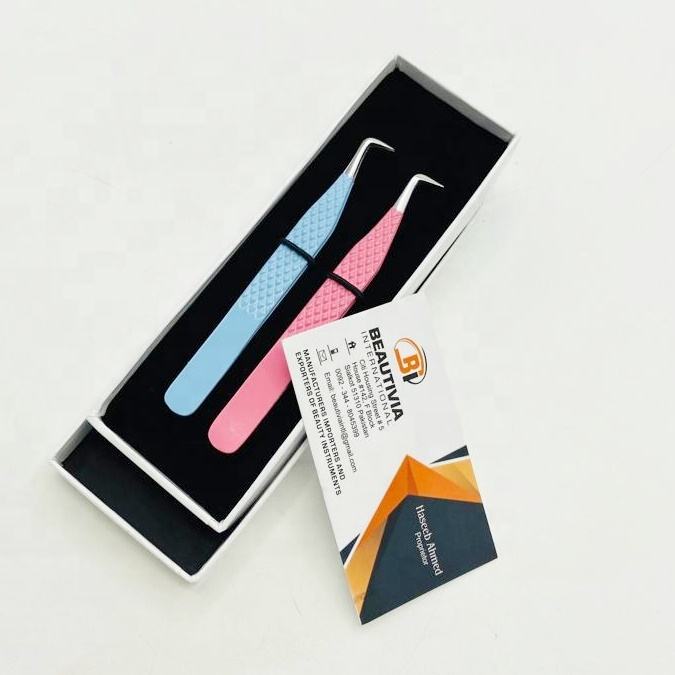 Custom Logo 90 Degree Slim Boot Stainless Steel Eyelash Extension Tweezers Pointed Professional Private Label Mega Volume
