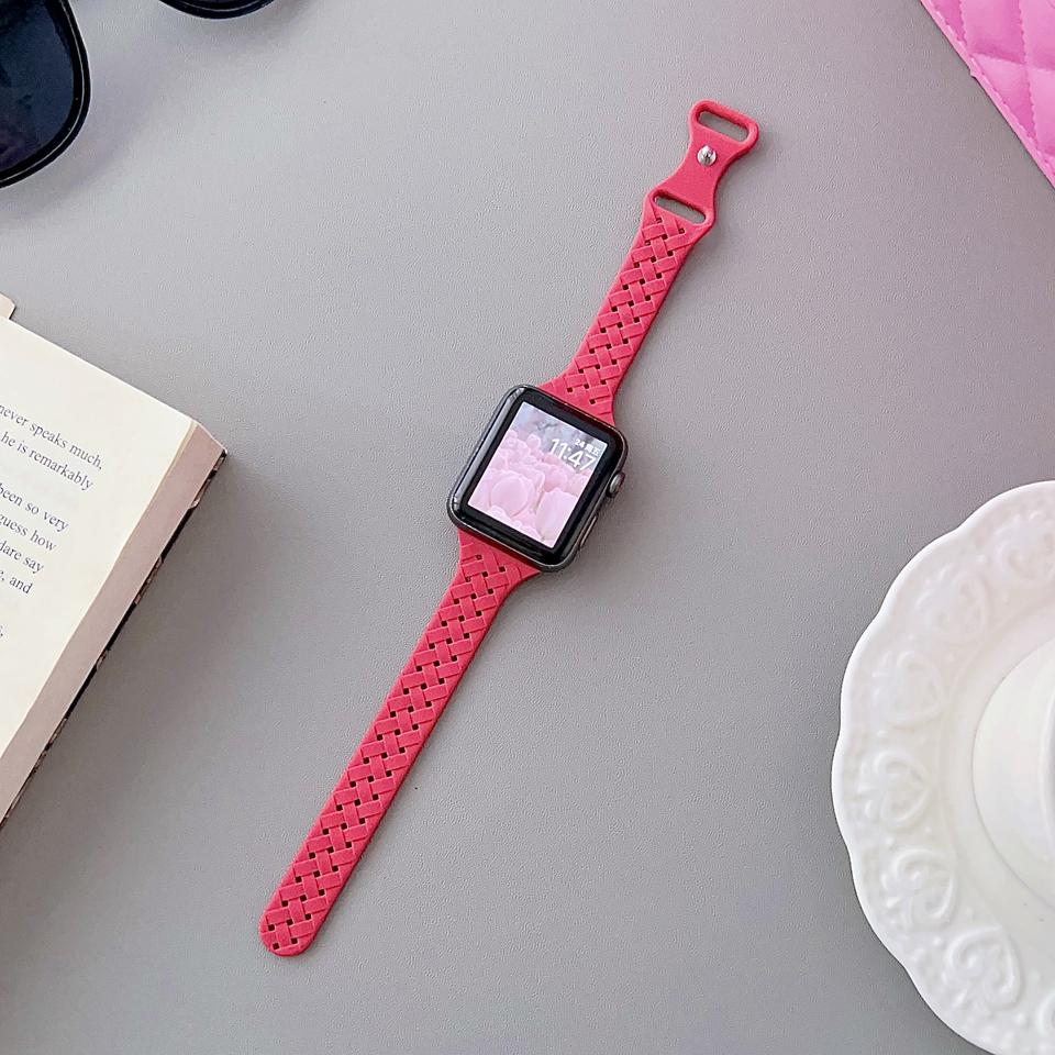 Bracelet en silicone à boucle solo tressée mince pour bracelet Apple Watch 40mm 41mm 45mm 42mm 46mm 44mm Bracelet pour IWatch 8 7 6 SE 5 4 3 49mm