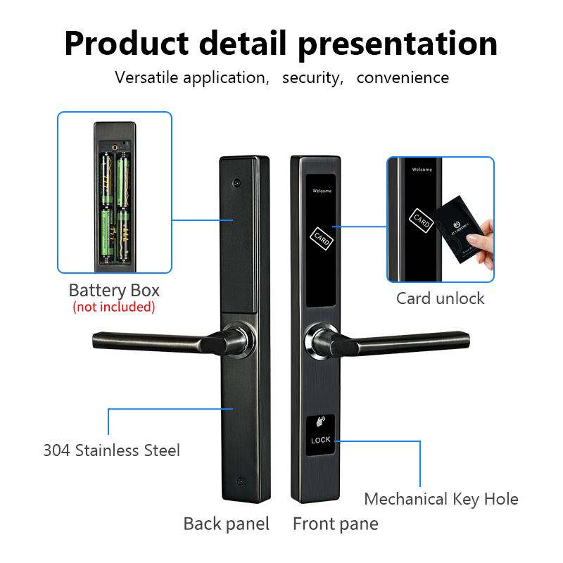 Serrure d'hôtel RFID au design fin, serrure RFID avec système de gestion logicielle pour location de vacances
