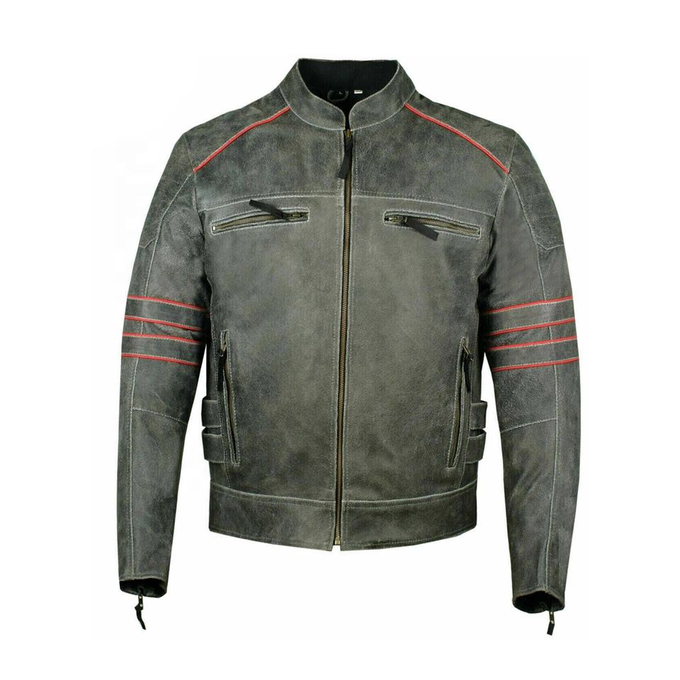 Slim-Fit Hommes Doubles-Poches Moto En Détresse-Cuir Biker Équitation Véritable Agneau-Mode Moto Vestes En Cuir