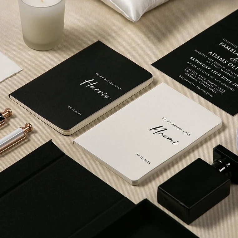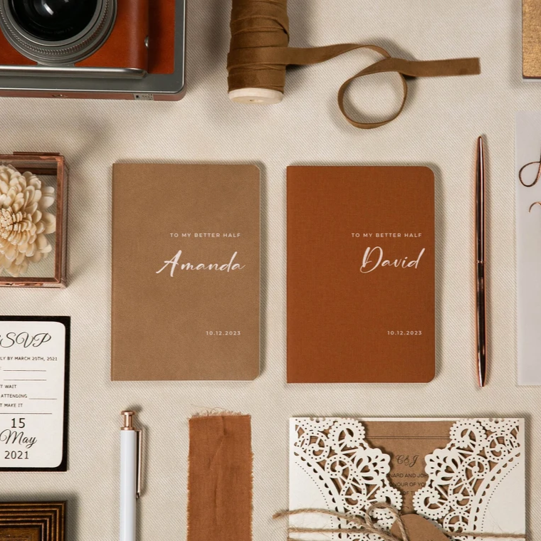 Carnet de promesse en lin fin, design de brochure, couverture souple, script de cérémonie, journal, bloc-notes de luxe pour discours, cadeau de fiançailles pour couple, mariée et marié