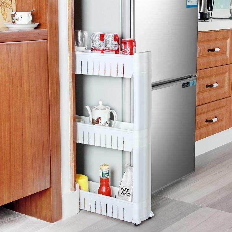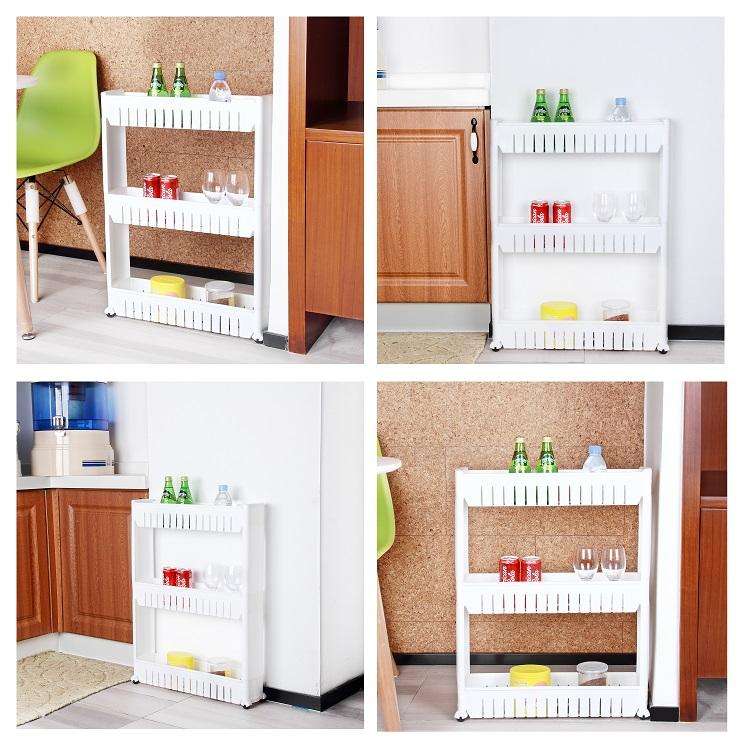 Chariot de rangement à roulettes mince étagère de rangement coulissante à 3 couches pour la buanderie, la cuisine et la salle de bain