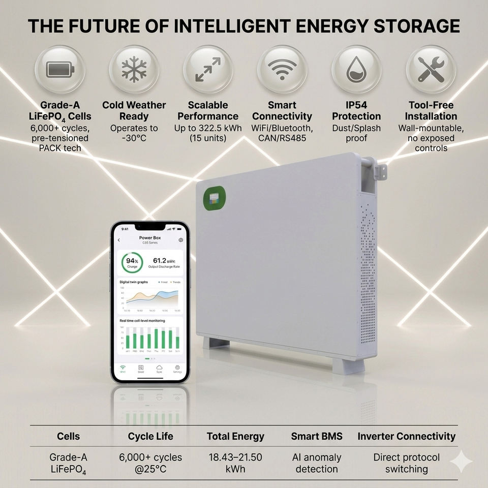 Batterie de stockage domestique intégrée ultra-mince de 21 kWh, offrant une installation murale sans coupure
