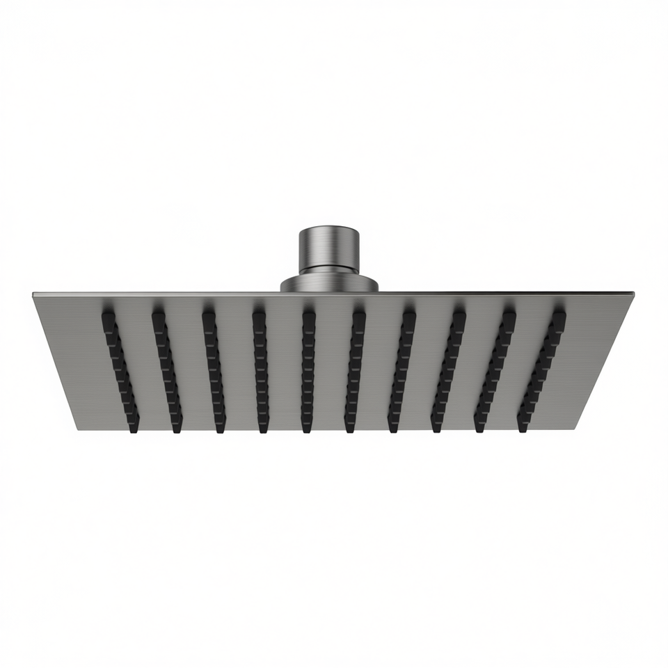 Pommeau de douche carré fin en acier inoxydable brossé 25 x 25 cm