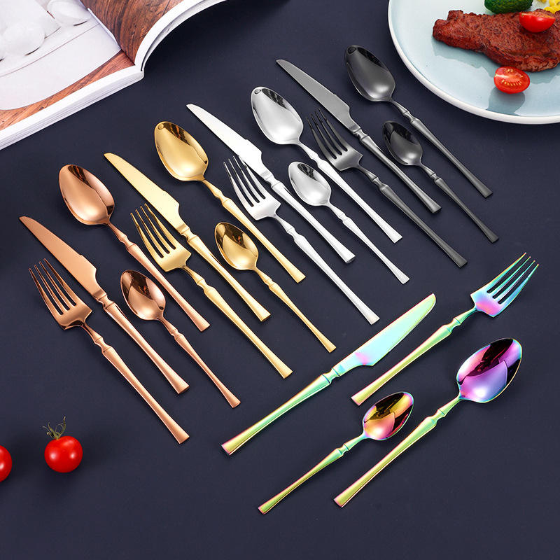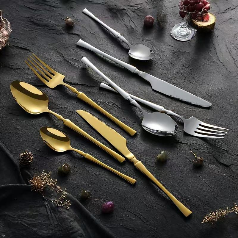 Ensemble de 4 couverts modernes en acier inoxydable à finition miroir, taille fine, jetables, pour hôtel, steak occidental, couteau, fourchette, plat principal