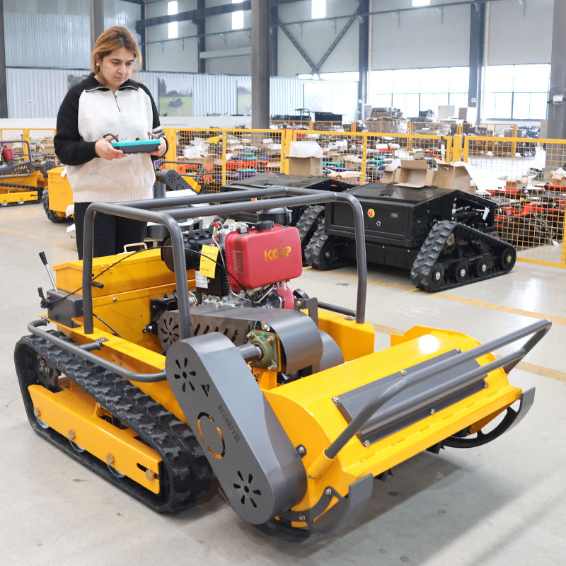 Tondeuse à fléaux diesel télécommandée sur chenilles pour terrains accidentés, à commande automatique et contrôle total