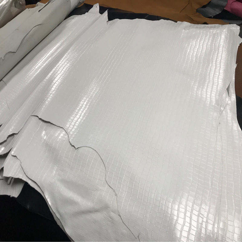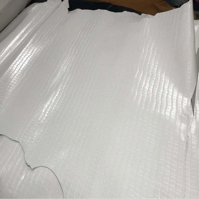 Cuir fin et souple en peau de mouton à motif crocodile, cuir de chèvre véritable blanc 1,0 mm, cuir fini pour manteau long