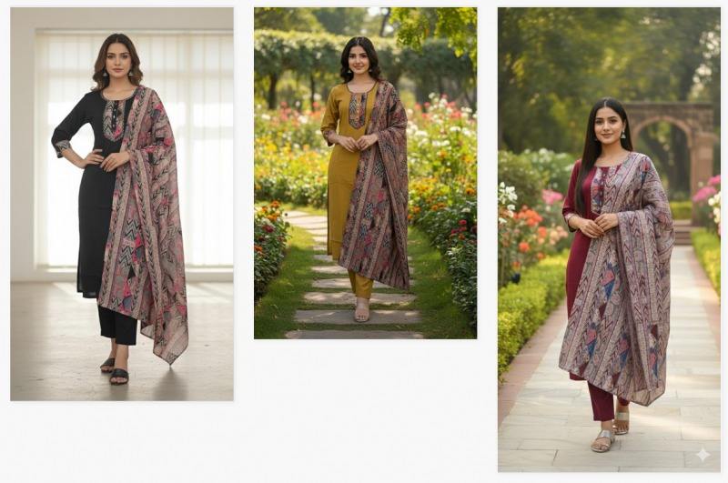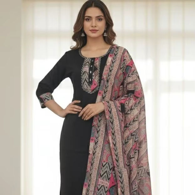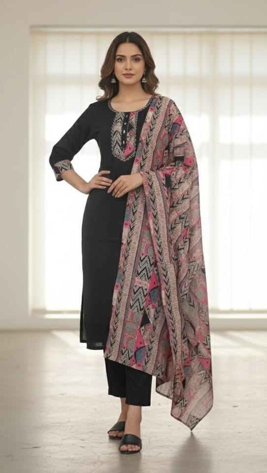 Top/Bottom/Dupatta:Slub Rayon Set Economy Range