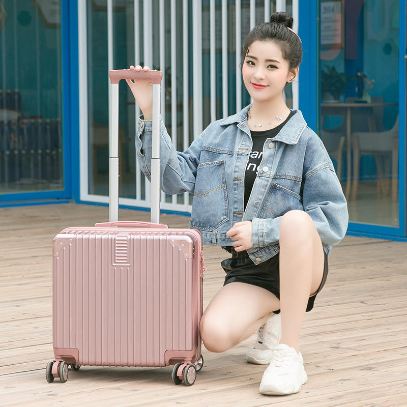 Petite valise de cabine 18 pouces pour femme, légère, couleur unie rose macaron, avec serrure et roulettes pivotantes, bagage de voyage
