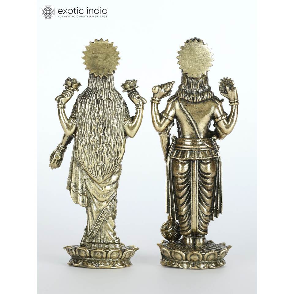 Petite sculpture traditionnelle superfine en laiton de 3 pouces Lakshmi Narayan Idol pour la décoration intérieure de mariage et le temple faits à la main en Inde