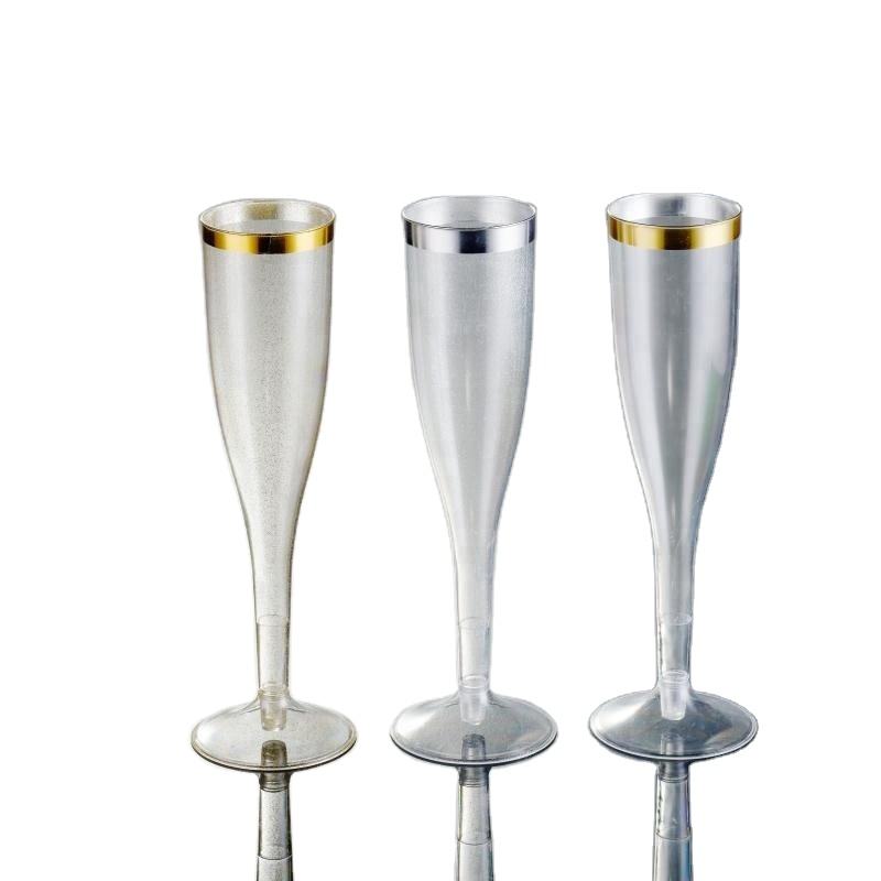 Petites peluches de toast à Champagne jetables en plastique, 4.5 OZ, 1 pièce, bordure dorée, paillettes, bon marché, élégant