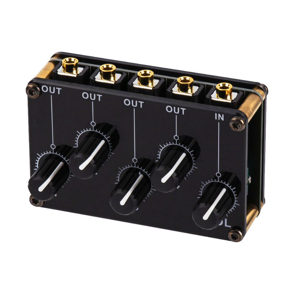 Petit mélangeur de ligne stéréo 4-en-1 pour l'enregistrement en direct, console de mixage audio analogique passive portable, faible bruit, 4 canaux