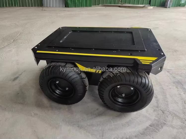 Petit véhicule terrestre électrique tout-terrain à 4 roues motrices (UGV) sans pilote avec chenilles en caoutchouc pour le transport de marchandises, robot UGV