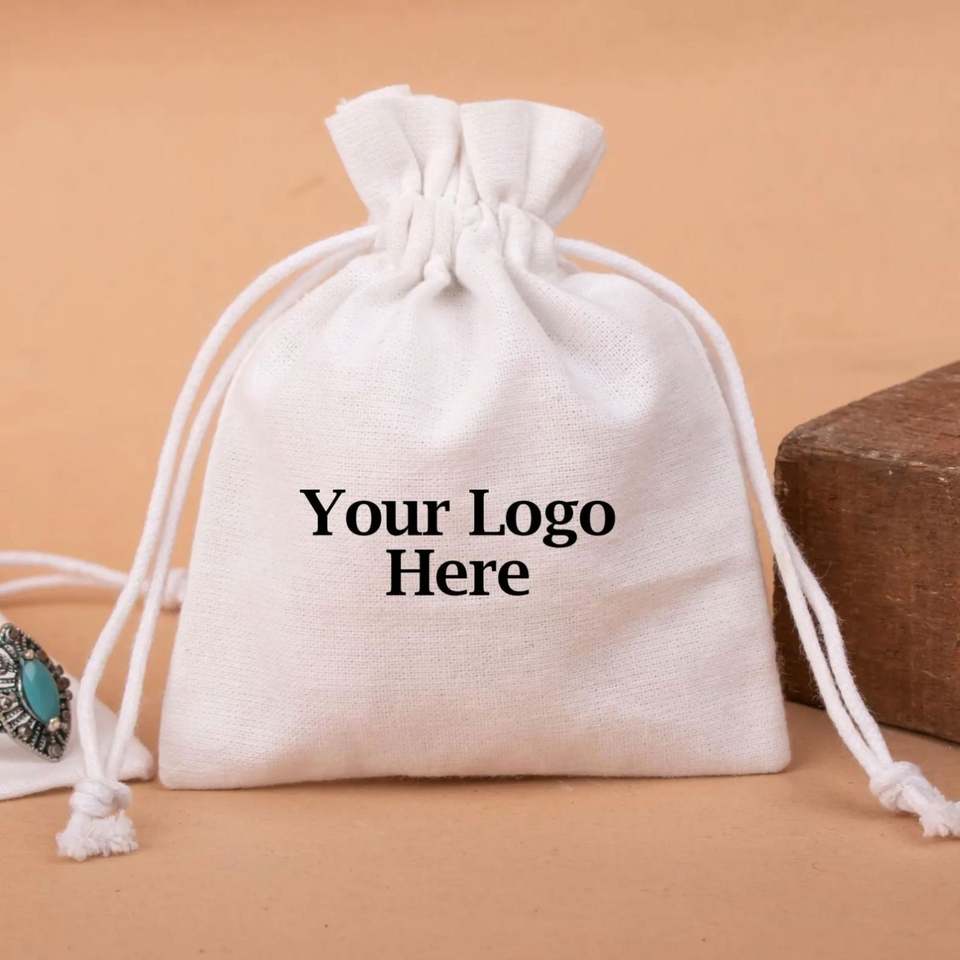 Petite pochette, sac à bijoux personnalisé avec cordon de serrage, sac anti-poussière sur mesure, sacs cadeaux, emballage de bijoux en coton avec cordon de serrage et logo