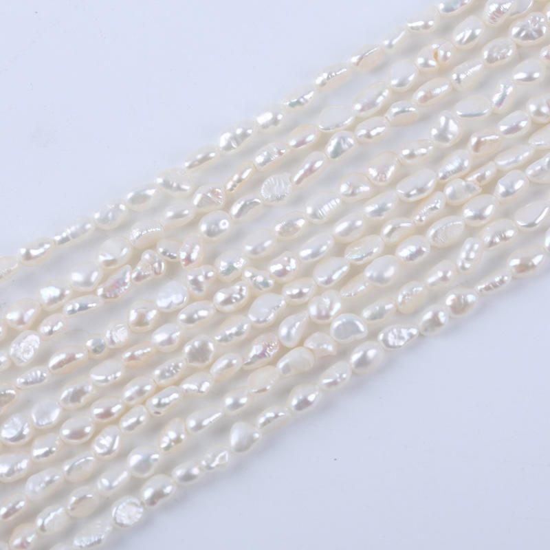 Petite perle d'eau douce naturelle de forme droite à deux faces de 3-4 mm de couleur blanche pour collier et bracelet DIY