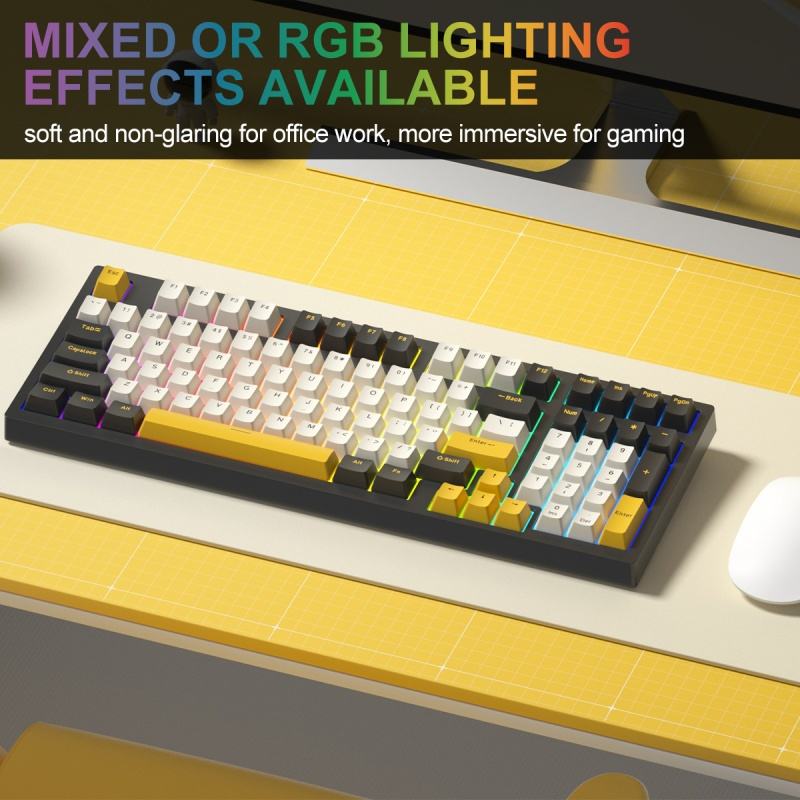Clavier mécanique de jeu filaire USB sur mesure en petite série, 98 touches, avec touches jaunes et grises et rétroéclairage