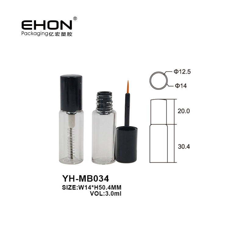 Tube de mascara en PETG rond classique de petite capacité (3 ml) avec impression sérigraphique et bouchon à vis, tubes vides pour cils, pour usage cosmétique