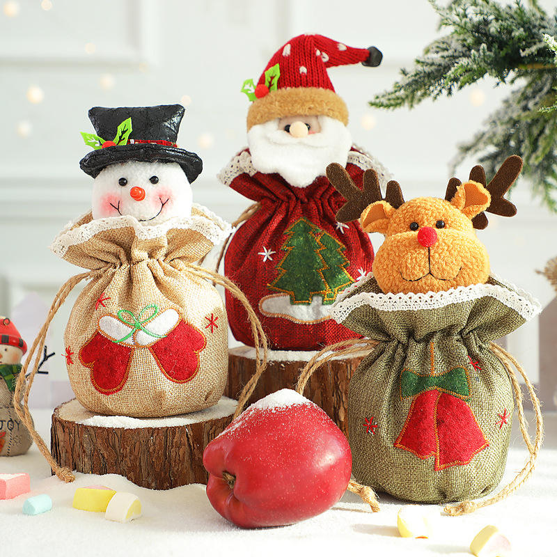 Petit cadeau de Noël Sacs à pommes Sac cadeau décoratif Cadeaux de Noël pour enfants Ensemble de jouets en peluche pour enfants