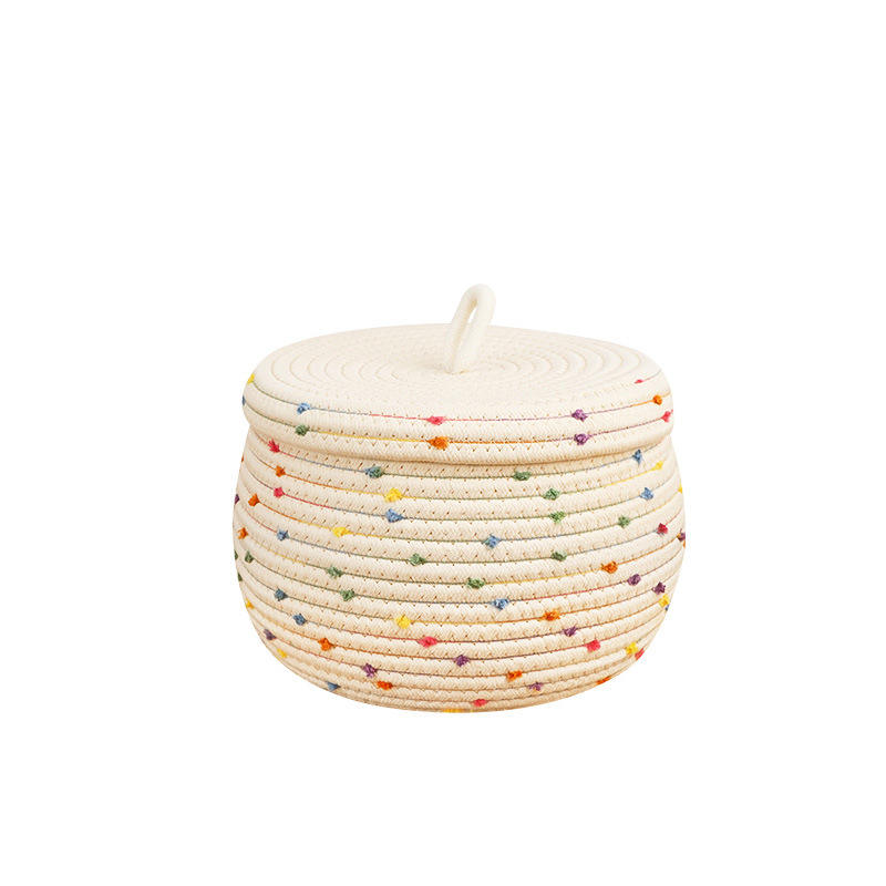 Petits paniers ronds tissés en corde de coton décoratifs à pompon arc-en-ciel coloré avec couvercles pour organiser