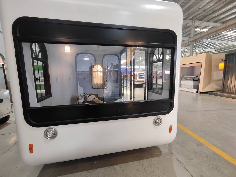 Petite Camionnette Aménagée Mobile, Cuisine Ambulante, Remorque de Restauration Compacte, Camion de Restauration en Fibre de Verre et Aluminium Isolé avec Suivi GPS