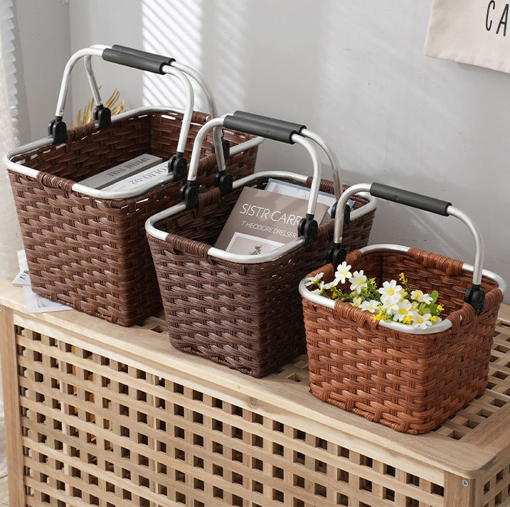 Petits paniers tissés pliables mignons de panier de pique-nique en plastique pour le stockage pour des pique-niques