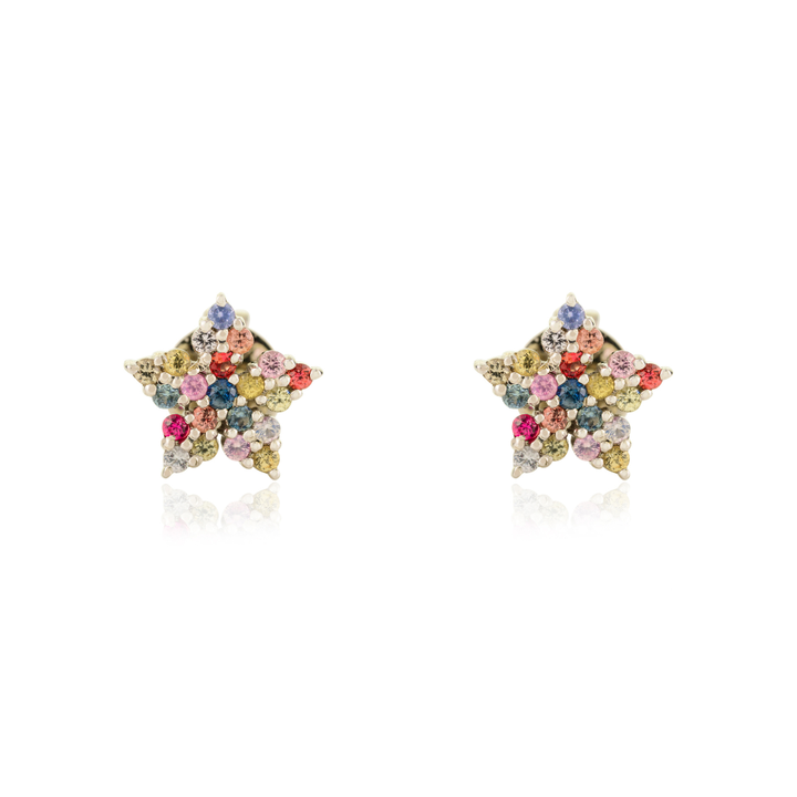 Petites boucles d'oreilles fines en forme d'étoile multicolore et colorées en arc-en-ciel naturel en or blanc 14 carats bijoux minimaux