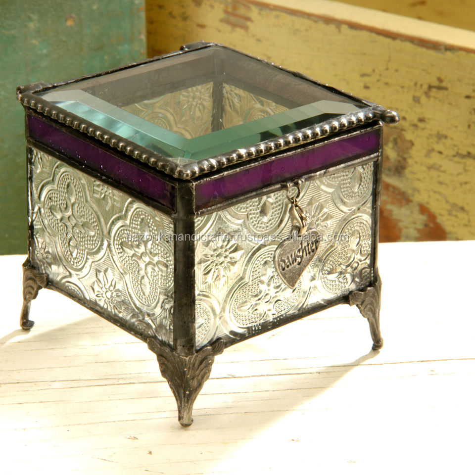 Petite boîte de rangement décorative, boîte à bijoux en verre et en métal, jolie et petite boîte à bijoux