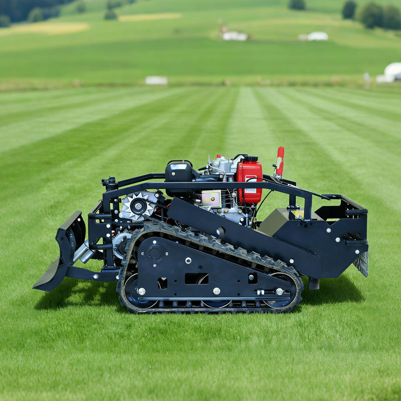 Mini-robot chenillé télécommandé diesel 4 temps tout-en-un pour la tonte de l'herbe, le déneigement et le débroussaillage de la herbe de rivière, inclinable à 45°