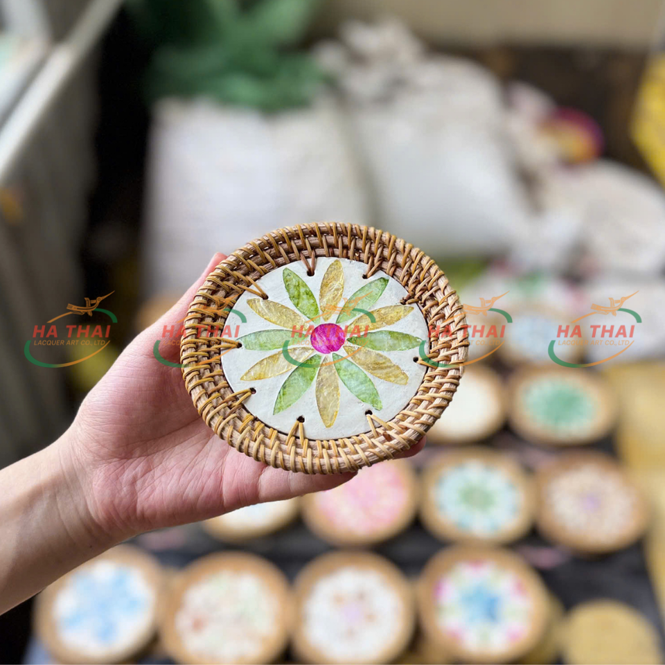 Small Dishes Handcrafted Mother of Pearl Inlay Round Plate Wooden Lacquer Decorative Dish for Jewelry or Gift Set