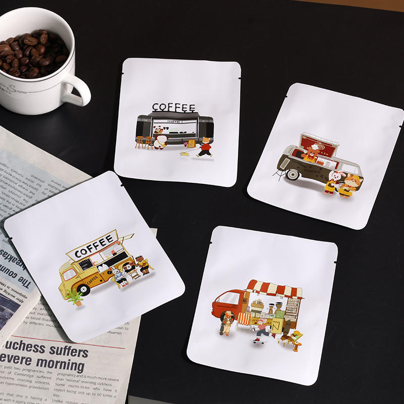 Petit sac à café goutte à goutte suspendu oreille feuille d'aluminium filtre grain de café emballage PE gaufré Spot inventaire Illustration Design