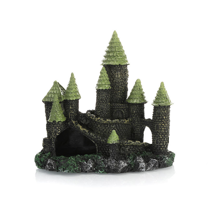 Petit château en résine écologique et décorations d'aquarium pyramidales pour aquarium pour salon aménagement paysager artisanat de cachette de poisson