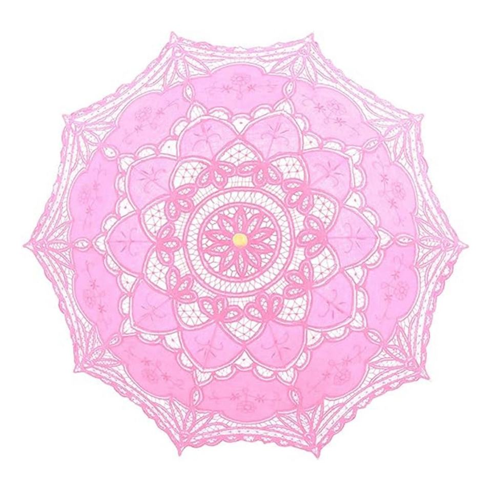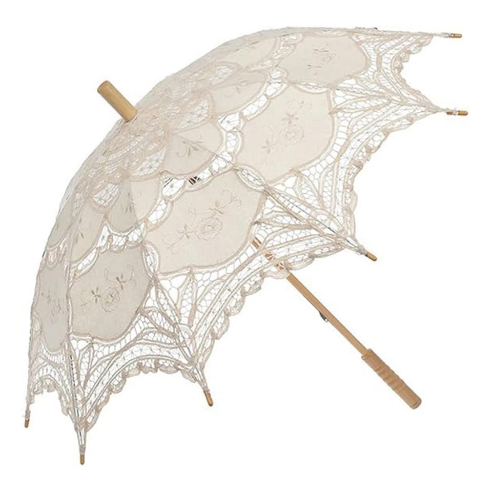 Mini parapluie droit pour adulte, design européen, blanc ivoire, avec dentelle, pour mariée, manivelle en bois, 8 baleines