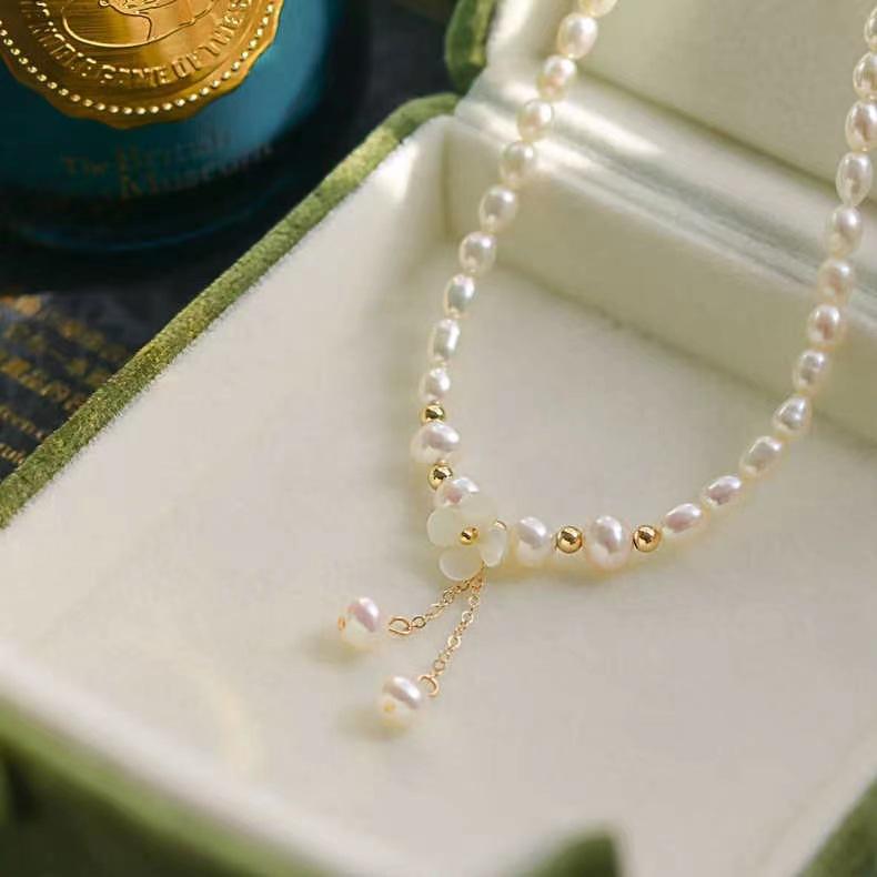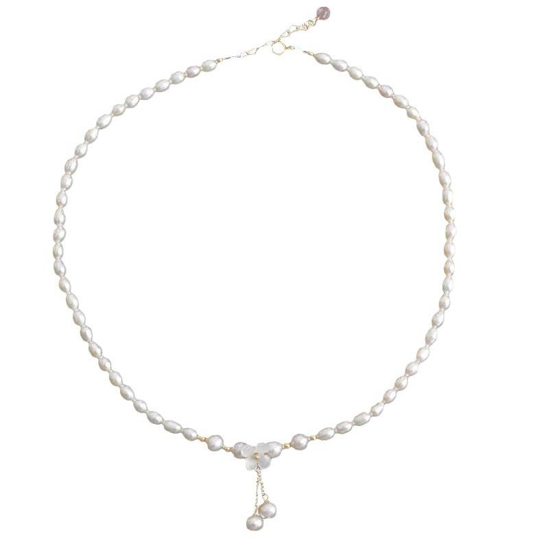 Small Flower Tassel Necklace Natural Freshwater Pearl S925 Silver Millet Beads China-Chic Design for Brides Bride's Chic Niches