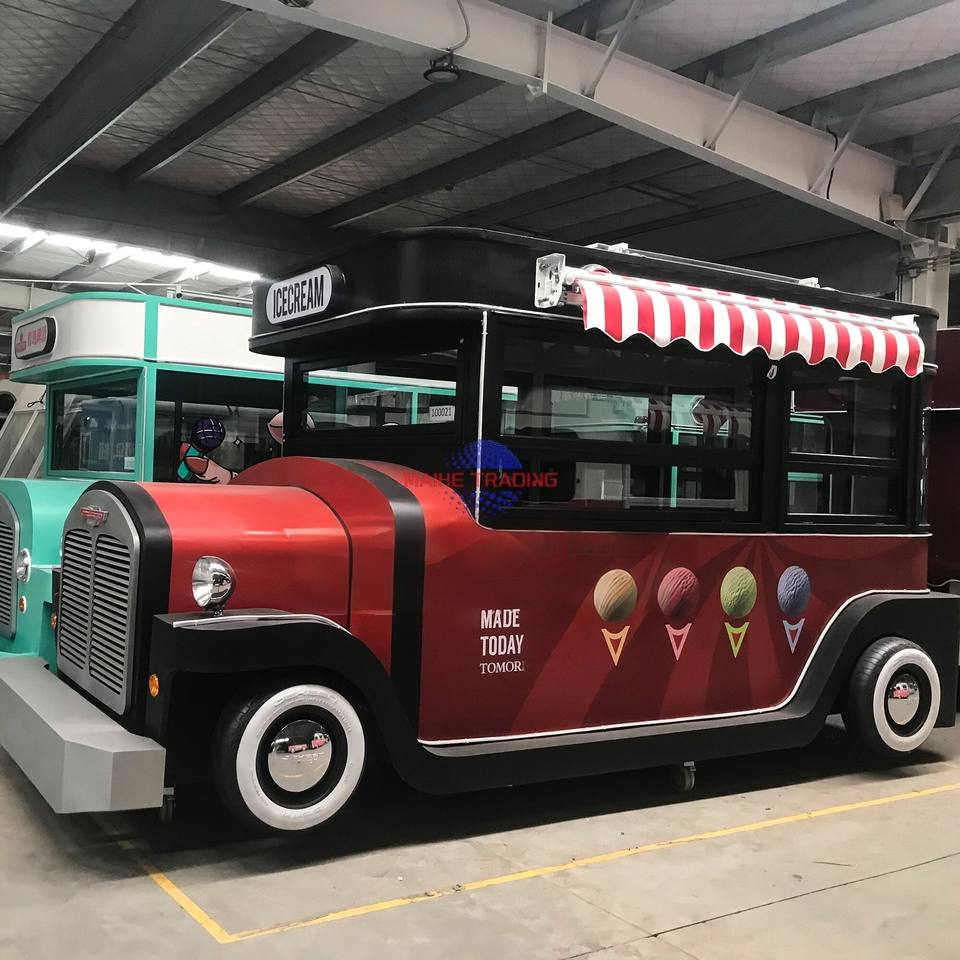 Petite remorque alimentaire noire, chariot à snacks, mini camion pour glaces, pizzas, café
