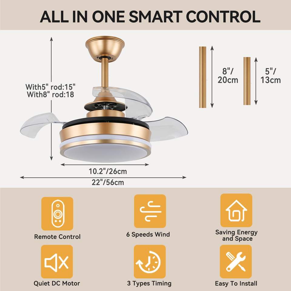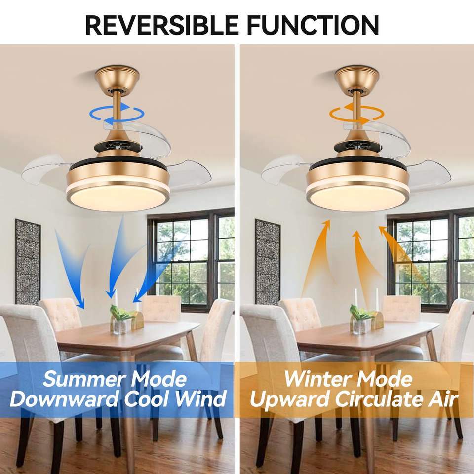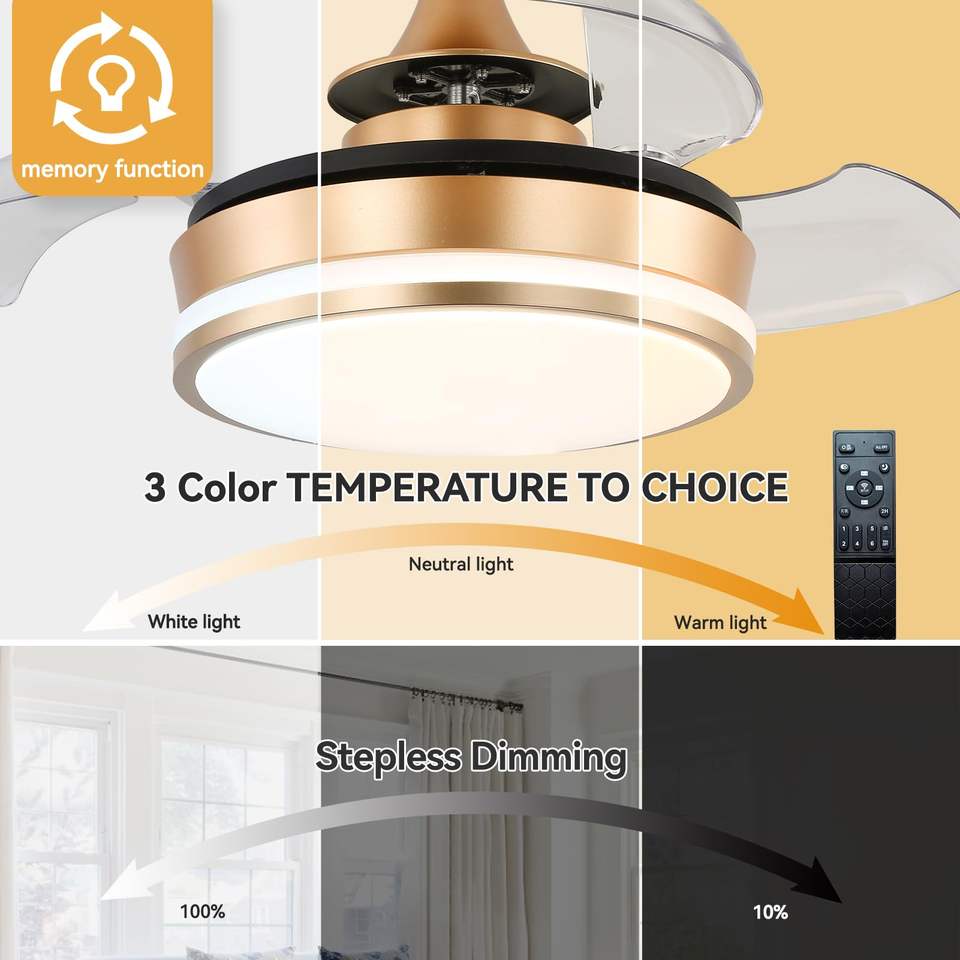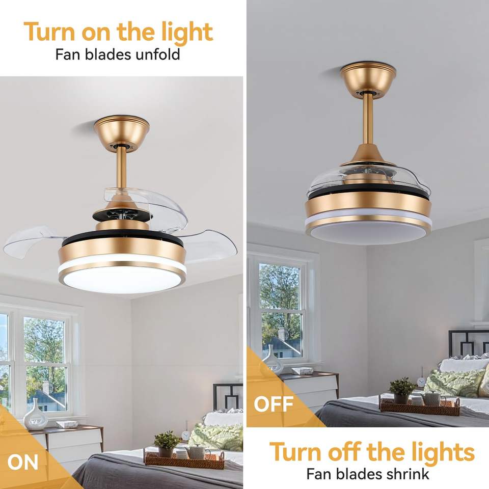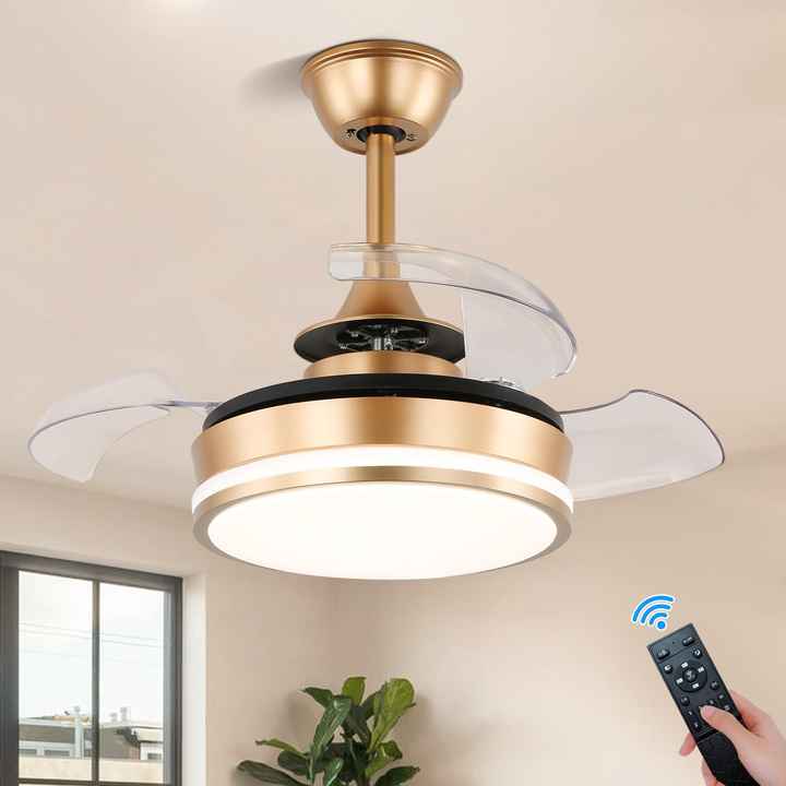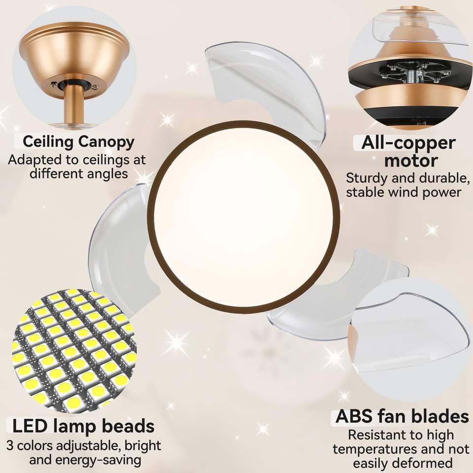 Petits ventilateurs de plafond à gradation dorés montage semi encastré avec lumière matériau ABS 6 vitesses faible décibel LED plafonnier encastré