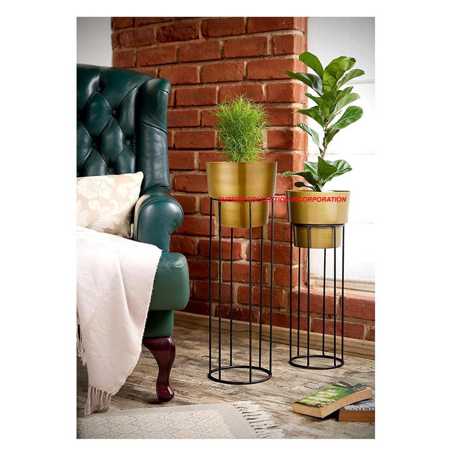 Petite jardinière dorée avec support noir sur Offre Spéciale fabriquée en Inde