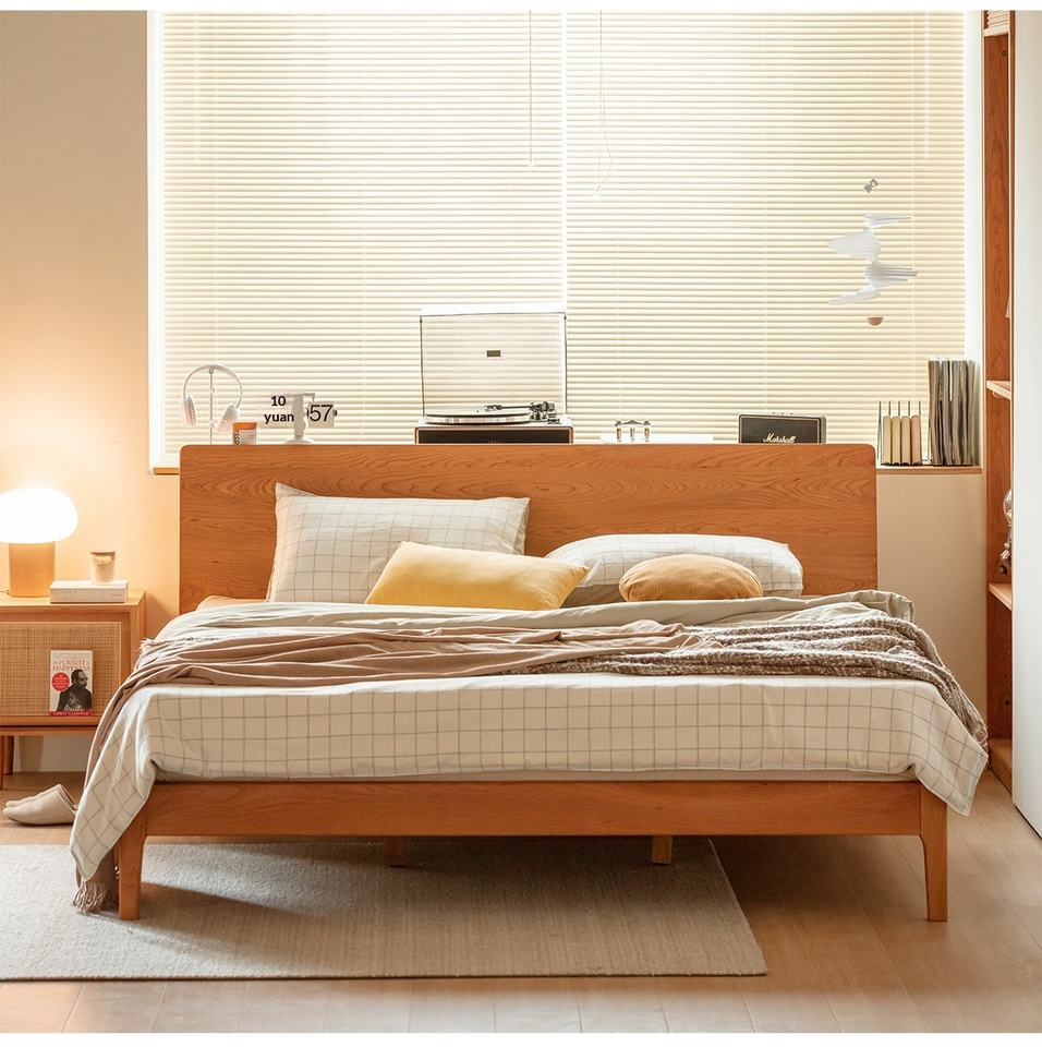 Petit lit Chihiro en bois massif nordique, demi-meuble, 1,5/1,8 m, lit double, matériau écologique, Chine