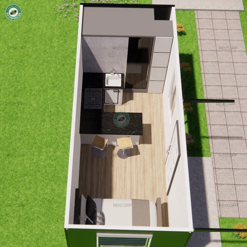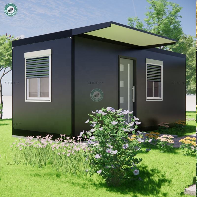 Conception de petite maison de 36 m², 2 chambres, 1 salon, avec auvent, meubles entièrement intégrés, maison conteneur à vendre