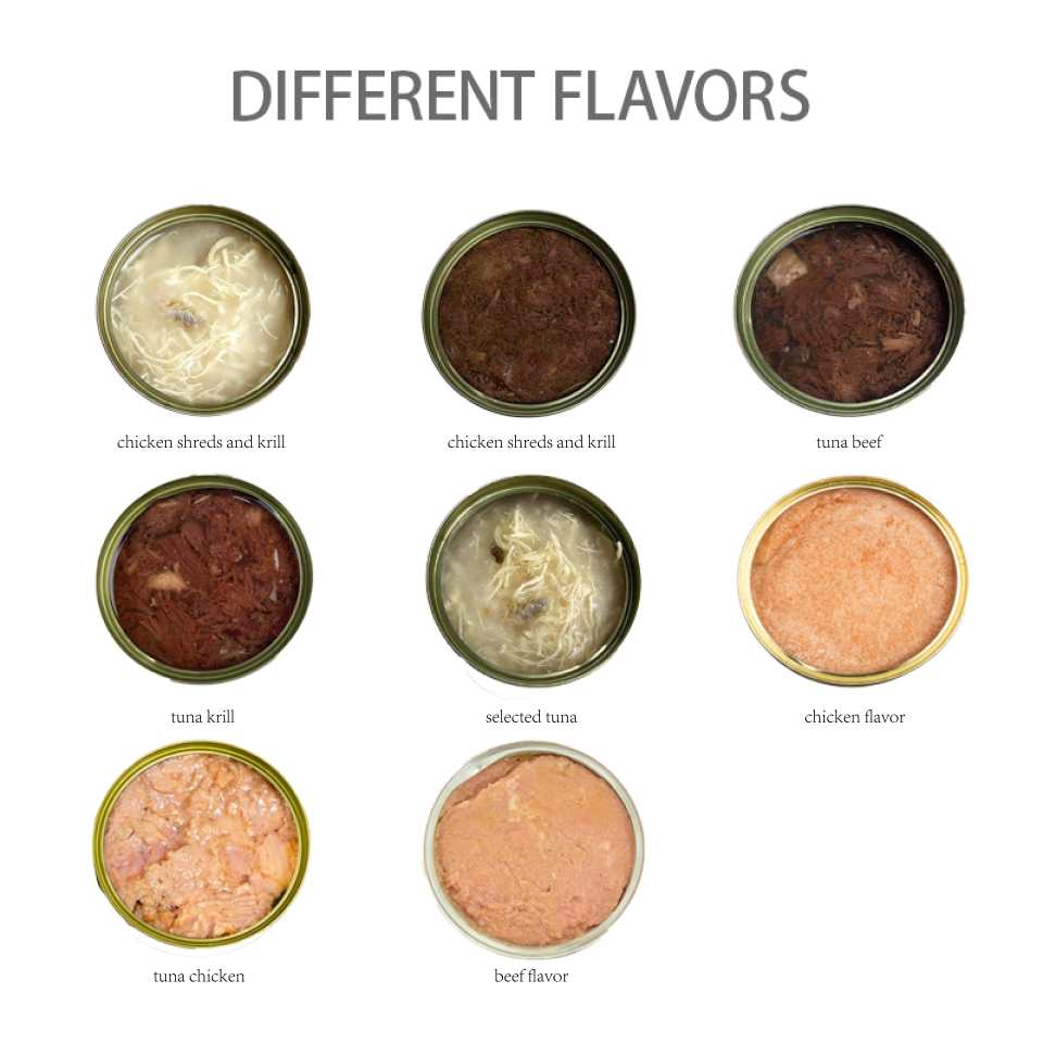 Ingrédient principal:Poisson, poulet, bœuf, thon, viande