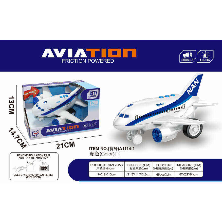 Comercializadora De Bienes Y Servicios Arpevi Avion Jouet à Friction 19cm avec Lumières et Son, Cadeau Éducatif pour Enfants