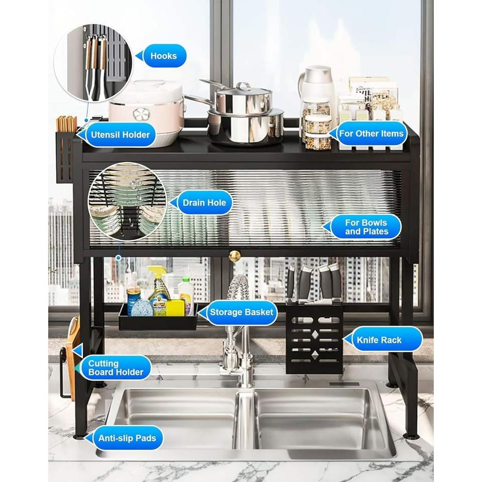 Égouttoir à vaisselle 3 niveaux pour petite cuisine, 85 cm, gain de place, à poser sur l'évier, égouttoir pratique pour un séchage efficace