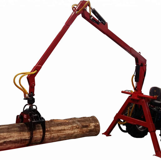 Petite grue forestière, grue forestière, remorque forestière avec grue