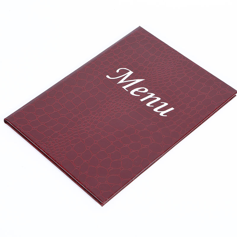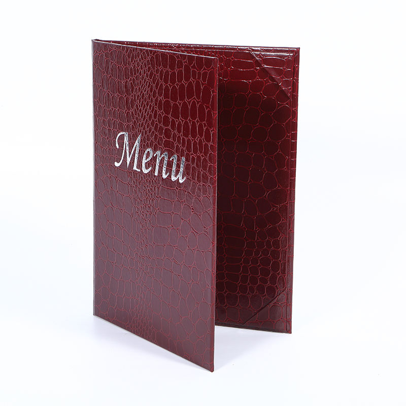 Porte-menu en cuir PU effet crocodile, petit MOQ, format A4/A5, avec support intérieur fixe